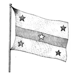 Design of the flag of the Gambier Islands from the 1872 book "Voyage aux îles Gambier (archipel de Mangarèva)"