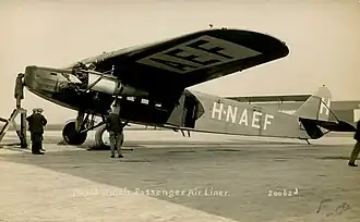 In 1936, two of KLM's Wasp-powered aircraft were sold to British Airways for use on their cross channel routes.[2] In 1937, KLM's PH-AED was sold to Venezuela. In 2001 the wreck of the PH-AED was salvaged by a team from the Aviodrome museum where the remains still are in storage in the Netherlands. On the eve of war in 1939, one of KLM's F.VIII's, PH-AEG, was transferred to the Swedish Air Force via ABA. Thus the airplane first flew with civil identification code SE-AEB but later on it got its Swedish Air Force designation, 916. This Fokker type was called Tp 10 in Swedish service. Another ex-KLM aircraft flew Sweden as SE-AHA (sse below).