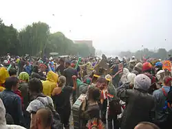 A food fight is a form of chaotic collective behavior, in which foodstuffs are thrown at others in the manner of projectiles. These projectiles are not made nor meant to harm others, but to simply ignite a fight filled with spontaneous food throwing. Food fights may be impromptu examples of rebellion or violence; however, they can also be planned events. In organized food fights, the food "weapons" are usually all of one kind, or of a limited variety (e.g., tomatoes), while in impromptu food fights (for example, in a school cafeteria), any food within reach is used.[1]