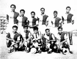 With Dacca's football scene dominated by West Pakistani players, the EPSF introduced regulations limiting clubs to a maximum of five non-Bengali players per league game. Clubs like Azad SC, Rahmatganj MFS, and Police AC prioritized Bengali players, yet over the two decades following Pakistan's creation, only 24 Bengalis represented the national team.[23] The highlight came at the 1958 Tokyo Asian Games, where Pakistan was captained by Nabi Chowdhury from Feni, and featured five other Bengali players. Besides the National Championship, the East Pakistan football team also played unofficial international matches, including a heavy 1–11 defeat to China on 24 January 1963 in Dacca.[24][25] In 1961, they faced Burma in two warm-up matches in Dacca and Chittagong, suffering similarly lopsided losses.[26] On 9 June 1963, the East Pakistan Sports Board XI played an exhibition match against Bundesliga club Fortuna Düsseldorf, who had an unplanned stay in Pakistan due to aircraft issues. The match at Dhaka Stadium ended in a 1–4 defeat for the hosts.[27] The team won their maiden international trophy in 1970, the King Mahendra Cup in Kathmandu, Nepal.[28]