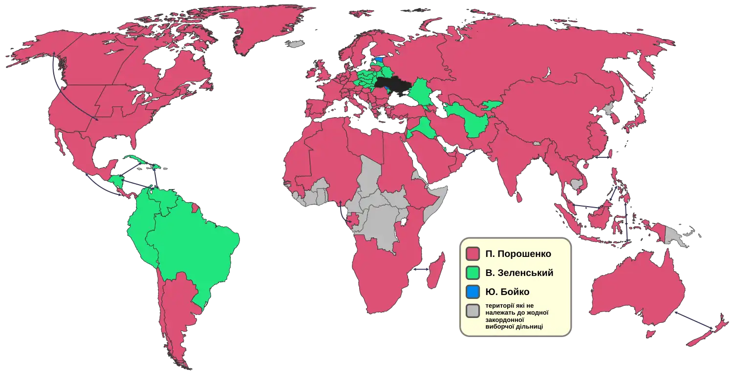 - ^ 2019 Ukrainian presidential election: Results of voting in polling stations abroad (vote on 31.03.2019) — website of the Central Election Commission (archive)