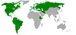 French conservatives were disillusioned with the colonial experience after the disasters in Indochina and Algeria. They wanted to cut all ties to the numerous colonies in French Sub-Saharan Africa. During the war, de Gaulle had successfully based his Free France movement and the African colonies. After a visit in 1958, he made a commitment to make sub-Saharan French Africa a major component of his foreign-policy.[30] All the colonies in 1958, except Guinea, voted to remain in the French Community, with representation in Parliament and a guarantee of French aid. In practice, nearly all the colonies became independent in the late 1950s, but maintained very strong connections.[31] Under close supervision from the president, French advisors played a major role in civil and military affairs, thwarted coups, and, occasionally, replaced upstart local leaders. The French colonial system had always been based primarily on local leadership, in sharp contrast to the situation in British colonies. The French colonial goal had been to assimilate the natives into mainstream French culture, with a strong emphasis on the French language. From de Gaulle's point of view, close association gave legitimacy to his visions of global client grandeur, certified his humanitarian credentials, provided access to oil, uranium and other minerals, and provided a small but steady market for French manufacturers. Above all it guaranteed the vitality of French language and culture in a large slice of the world that was rapidly growing in population. De Gaulle's successors Georges Pompidou (1969–74) and Valéry Giscard d'Estaing (1974-1981) continued de Gaulle's African policy. It was supported with French military units, and a large naval presence in the Indian Ocean. Over 260,000 Frenchmen worked in Africa, focused especially on delivering oil supplies. There was some effort to build up oil refineries and aluminum smelters, but little effort to develop small-scale local industry, which the French wanted to monopolize for the mainland. Senegal, Ivory Coast, Gabon, and Cameroon were the largest and most reliable African allies, and received most of the investments.[32] During the Nigerian Civil War (1967–1970), France supported breakaway Biafra, but only on a limited scale, providing mercenaries and obsolete weaponry. De Gaulle's goals were to protect its nearby ex-colonies from Nigeria, to stop Soviet advances, and to acquire a foothold in the oil-rich Niger delta.[33]