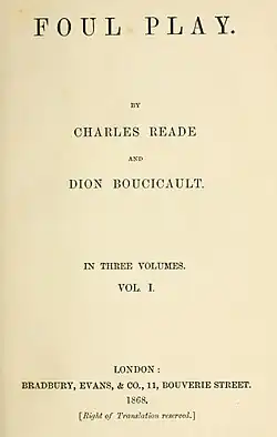 Foul Play is an 1869 melodramatic or sensation novel by the British writer Charles Reade. In Victorian Britain a clergyman is wrongly convicted of a crime and transported to Australia. He is shipwrecked with an aristocratic woman on the hitherto uncharted "Godsend Island" in the South Pacific. Eventually he is rescued and vindicated of his crime.