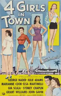 Four Girls in Town is a 1957 American CinemaScope Technicolor drama film, directed by Jack Sher, about four girls trying to be movie stars.[2]