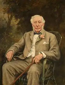 He had a very brief parliamentary career as Member of Parliament for Walsall. After unsuccessfully contesting the seat for the Conservatives at the general election of 1885 and a by-election in 1891, he was elected at the general election in July 1892.[2] A petition to overturn the result of the election was made, however, alleging gross bribery, treating and general corruption. James was unseated in November when his son, who was his election agent, admitted to paying for the printing of cards to be displayed in his supporters' hats. This was found to be in breach of section 16 of the Corrupt Practices Act 1883, which forbade payment for cockades, ribbons, or other marks of distinction.[3]