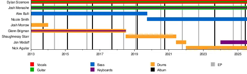 • Dylan Sizemore - lead vocals, rhythm guitar (2013-present)