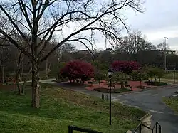 Frazier Park is a 16.5-acre (6.7 ha) urban park at 1201 West 4th Street Ext in the Third Ward of Charlotte, North Carolina, United States. It contains fields for soccer and American football, courts for tennis and basketball, creek-side trails, a playground for small children, and a dog park.[1] Part of Charlotte's Irwin Creek Greenway, a paved and gravel greenway, runs through Frazier Park.[2]