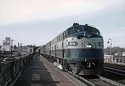 The PF&P was converted to standard gauge in 1926 and became the Virginia Central Railway. It was abandoned in 1937 except for a short section at the Fredericksburg end, which lasted until 1984.[4] Passenger service on the RF&P primarily consisted of long-distance trains serving the southern states, which the railroad carried between Washington and Richmond. By 1955, the line carried 14 daily long-distance round trips plus one Washington–Richmond local round trip, all of which stopped at Fredericksburg.[7]