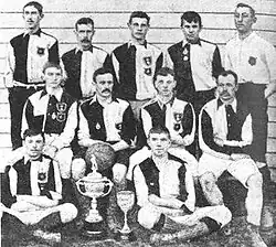 In 1896, Freemantle were one of eight clubs who were elected to join an expanded Southern League Second Division. In their first season in league football, they acquitted themselves well, finishing third in the table, winning twelve and drawing four of the 24 games played.[14] This earned them a test match against Northfleet who had finished ninth in the eleven team First Division, in which Southampton St. Mary's were champions for the first time. The Magpies won the test match 3–0 at Millwall's East Ferry Road ground on 1 May 1897.[15] After the game, Northfleet lodged a protest concerning the legality of one of Freemantle's player's, Phillips, who played most of his football with Royal Artillery Portsmouth. A week later, a meeting of the Southern League found that Phillips had signed Southern League forms for both Northfleet and Freemantle; although he had already played for Freemantle and had made no appearances for Northfleet, his transfer had never been applied for. The committee ruled that Freemantle be deducted two points, dropping them to fourth and that both sides involved in the test match should remain in their original divisions.[15]