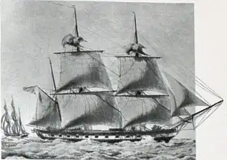 In August 1808 Diligente, captained by Commander Jean-François Lemaresquier, with the corvettes Sylphe and Espiègle, sailed from France with supplies for the island of Martinique. British ships chased the group through the Bay of Biscay and captured Sylphe and Espiègle.[3] Diligente escaped, only to encounter the British sloop Recruit, under Commander (later to be Admiral) Charles Napier, off Antigua. During a hard-fought action lasting three hours, Recruit's mainmast fell, putting her somewhat at Diligente's mercy. However, a lucky shot ignited Diligente's ammunition store, causing some damage. Diligente withdrew and later Lemaresquier justified his action on the grounds that other British naval vessels were approaching, which they were not, and the weight of Recruit's broadside, which was heavier.[4][5]