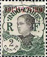 The post offices run by French Indochina differed from the other French Post Offices in China in a number of areas. Initially, the general issues of the Paris-run French Offices in China (c. 1902–1904) were used, and these can be found with postmarks applied by the Indochinese offices. Shortly thereafter, stamps were issued with overprints specific to the office that issued them. For instance, the Canton office issued stamps overprinted "CANTON" rather than "CHINE". Seven such Indochinese post offices had these overprints (here written as they appeared on the stamps) along with their opening dates:[1]