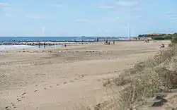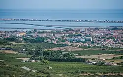 The town is surrounded by the Gardiole hills to the north, the Ingril lagoon in the east, the Étang de Thau to the west and the Mediterranean shore (including the beach resort Frontignan-Plage) to the south.