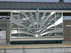 San Jose artist Diana Pumpelly Bates has created metal screens for the shelters that provide visual interest for passengers at the stations as well as for motorists and pedestrians passing by the stations. The designs reflect the rising and setting sun.[5]