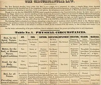Alcott and Lane collaborated on a letter which was published in the New York Evening Tribune on September 1 and soon republished elsewhere. In the article, titled "The Consociate Family Life", the duo explained their main purpose was to improve society through "simplicity in diet, plain garments, pure bathing, unsullied dwellings".[9]
