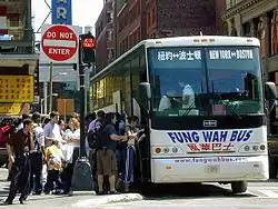 Fung Wah Chinatown Bus awaiting departure at the Canal St. stop in Manhattan, New York City, in 2007