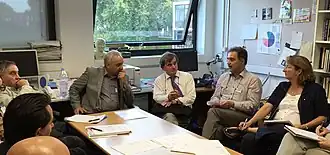The board of ECSO holding a meeting in London at the 16th European Skeptics Congress in 2015 (left to right): Tim Trachet, Amardeo Sarma, Michael Heap, Gábor Hraskó and Catherine de Jong