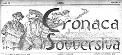 The Galleanisti were a group of Italian anarchists and radicals in the United States who followed Luigi Galleani and his message of "heroic" violence in the face of capitalist oppression. Galleani was a figurehead in the Italian anarchist movement who, following the violence of the 1913 Paterson silk strike, turned from promoting a general strike to promoting individual acts of violence against capitalist targets. He believed that the spectacle of terrorism would trigger popular revolt.[1] For the part of his followers, Galleani prompted a symbolic war that continued after his deportation and the raid on the offices of his newspaper, Cronaca Sovversiva.[2]