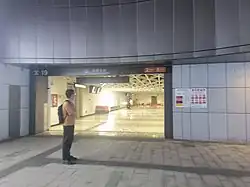 Gangxia North station is an interchange station for Line 2, Line 10, Line 11 and Line 14 of the Shenzhen Metro. Line 2 platforms opened on 28 June 2011,[1] Line 10, Line 11[2] and Line 14 platforms[3][4] opened on 28 October 2022.[5] Measuring 220,000 meters square, it is 1.6 times as large as the nearby intermodal Futian station.[6] It is the second four-line interchange station in the Shenzhen Metro after Chegongmiao station.