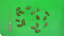 In Equidae, third-stage larvae attach to the stomach, but also to the rectum, sometimes in great numbers.[1] Heavy infestation can cause anal prolapse in foals and mules.