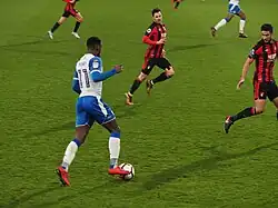 Leyton Orient signed Massey on a three-year deal from Colchester for an undisclosed fee on 8 June 2016.[94] Massey said that he only had a brief conversation with manager Andy Hessenthaler but felt as though the club were ready to achieve promotion.[95] He scored on his debut in a 1–1 draw with Cheltenham Town on 6 August.[96] He scored a brace with two close-range efforts in a 3–0 win over Stevenage at Brisbane Road ten days later.[97] Despite being praised for his form by caretaker manager Andy Edwards, he then played 23 games not scoring a goal that he ended in the new year with a run of five goals in six games under new manager Daniel Webb.[98][99] He ended the 2016–17 season with eight goals in 39 matches as the O's were relegated to the National League after finished 23rd in League Two.[99] He missed the end of the season run-in and did not feature under new manager Omer Riza after being sidelined with a hamstring injury in March.[100]