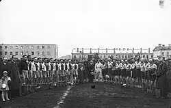 Formed on 15 August 1922, Gedania was an ethnic Polish football team who played in the Free City of Danzig (present day Gdańsk, Poland). A sports club was created by the gymnastics club Towarzystwo Gimnastyczne Sokół (Falcon Gymnastic Company) and was initially given the name Polonia Danzig, Polonia being the Latinized name for Poland. The local authorities opposed this name however, with the club settling for the name Gedania Danzig, Gedania being the Latinized name of Gdańsk/Danzig. The footballing section of the sports club was not formed until 1933, and competed in the German lower divisions. After moderate success with two 3rd-place finishes and two 2nd-place finishes within the space of 4 years, Gedania Danzig was forced to cease operations due to the Nazi occupation of Poland. After the occupation of Danzig, the club's president, Henryk Kopeck, and two vice-presidents, Konrad Zdrojewski and Władysław Dębowski were shot. Most of the players and footballing staff were sent to concentration camps. In total 75 people associated with Gedania before its operations ceased died during the war.[1]