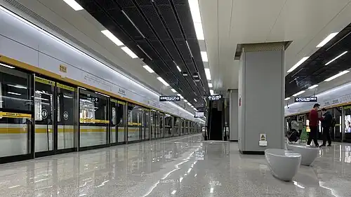 Gediannan Railway Station (Chinese: 葛店南站) is a station on Line 11 of the Wuhan Metro. It entered revenue service on January 2, 2021. It is located in Huarong District in Ezhou and it is the eastern terminus of Line 11.