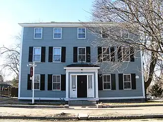 The Gen. Gideon Foster House is a historic house in Peabody, Massachusetts. The two story Federal style wood-frame house was built in the early 1800s at a location on Main Street. The house was bought in 1815 by Gideon Foster, a local veteran of the American Revolutionary War and the War of 1812. The house was later owned by Eben Sutton, a local textile manufacturer, who sold the house so that it could be moved to make way for a larger house on the same lot.[2]