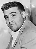 While serving his sentence for heroin trafficking, Valachi came to fear that Genovese, also serving a sentence on the same charge, had ordered his murder.[54] On June 22, 1962, using a pipe left near some construction work, Valachi bludgeoned an inmate to death whom he had mistaken for Joseph DiPalermo, a Mafia member he believed had been contracted to kill him.[53] After time with FBI handlers, Valachi came forward with a story of Genovese giving him a kiss on the cheek, which he took as a "kiss of death".[55][56][57] A $100,000 bounty for Valachi's death had been placed by Genovese.[58]