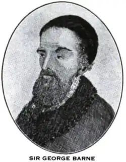 Sir George Barne (died 1558) (also called Barons or Barnes) was an English businessman in the City of London who was active in developing new trading links with Russia, West Africa and North America, far outside what had been traditional English trading patterns.[1] Created a knight in 1553, he served as Sheriff of London and Lord Mayor of London. He was the father of Sir George Barne (died 1593) and grandfather of Sir William Barne. Nicholas Culverwell was probably a nephew.[1]