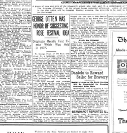 - ^ a b c d e f g h "George Otten Has Honor of Suggesting Rose Festival Idea". The Oregon Sunday Journal. June 7, 1914. p. 4. Retrieved February 28, 2025.