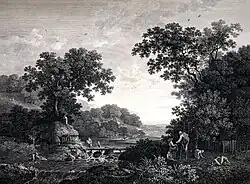 Many of Smith's works, were engraved by William Woollett, William Elliott (1727–1766), James Peake (1729–1782), Thomas Vivares (1735–1821), and others; a series of twenty-seven plates from his pictures, with the title "Picturesque Scenery of England and Wales", was published between 1757 and 1769. A set of fifty-three etchings and engravings by him and his brother John, from their own works and those of other masters, was published in 1770.