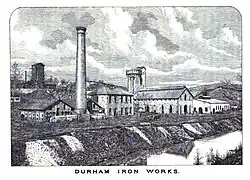 Durham Iron Works, as rebuilt in 1874.[8] Illustration from William Watts Hart Davis' History of Bucks County, 1876.[13]