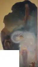 He claimed to see nature spirits and made paintings about them, such as the sídhe, elven or faerie beings in Irish folklore.[19][20] On one occasion, he showed some drawings he had made of them to a peasant, who would have pointed out that he had already seen many of those entities.[20] In 1889 he had traveled with W. B. Yeats to a town in County Galway, where Russell also painted these spirit beings, and a Druid is said to have appeared to them in vision.[21] The previous year, in a letter to Yeats, Russell had stated: