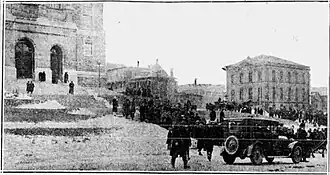 The day after the game, Vézina was diagnosed with tuberculosis and advised to return home.[26] He made a last trip into the Canadiens' dressing room on December 3 to say a final goodbye to his teammates. Dandurand would later describe Vézina as sitting in his corner of the dressing room with "tears rolling down his cheeks. He was looking at his old pads and skates that Eddie Dufour [the Canadiens trainer] had arranged in Georges' corner. Then, he asked one little favour—the sweater he had worn in the last world series."[5] Vézina returned to his hometown of Chicoutimi with his wife Marie, where he died in the early hours on Saturday, March 27, 1926, at l'Hôtel-Dieu hospital. Though he played only one period for the Canadiens during the entire season, the team honoured his entire $6,000 salary, a testament to how important Vézina had been to the team. The Canadiens finished in last place in 1925–26.[26]