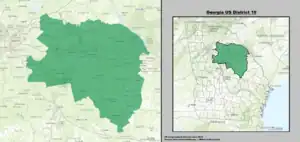 The district's boundaries were redrawn following the 2010 census, which granted an additional congressional seat to Georgia.[5] The first election using the new district boundaries (listed below) were the 2012 congressional elections.