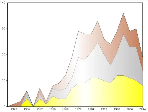 3. ^ Counting the eleven Games where both East Germany (GDR) and West Germany (FRG) competed as two appearances.