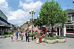 By the mid-20th century, the High Street included several national retailers, including Marks & Spencer,[6] LeFevre's,[7] Littlewoods,[8] and Woolworths.[9] These businesses were part of a broader national retail landscape and contributed to the street's role in the town's economy. However, from the 1960s onwards, emerging trends such as the growth of suburban shopping centres began to impact traditional retail streets.