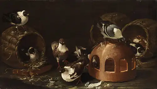 He painted portraits with some success, but preferred painting animals in the style of Antonio Maria Vasallo, Benedetto Castiglione, and Joannes Fyt, a style which he learned from Jacques van de Kerckhove in Venice.[2] Paintings of still life subjects are found in the collections at Florence, Venice, and Genoa.