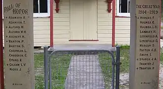 ![]() Detail of the Rolls of Honour at the entrance to the School of Arts hall | |||||||||||||||