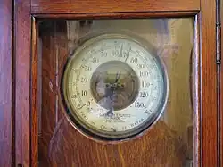 Thomas Kennedy (senior) was a watch and clockmaker, who moved to Kilmarnock in 1824 from Argyleshire. At around that time, he patented the Kennedy Water Meter, which he designed with the help of John Cameron, another watchmaker in Kilmarnock.[2] A valve directs water entering the meter into a cylinder of known volume containing a piston. As the piston rises and falls, the measured quantity of water is expelled and the mechanism is connected to recording dials to track the volume of water used.[3]