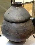 The Golasecca culture is best known for its burial customs, where an apparent ancestor cult imposed respect for the necropolis, a sacred area untouched by agrarian use or deforestation. The early-period burials took place in selected raised positions oriented with respect to the sun. Burial practices were direct inhumation or in lidded cistae. Stone circles and alignments are found.[11] Burial urns were painted with designs, with accessory ceramics, such as cups on tall bases. Bronze objects are usually of wearing apparel: pins and fibulas, armbands, rings, earrings, pendants and necklaces. Bronze vessels are rare. The practice of cremation persists into the second period (early sixth to mid-fourth centuries).