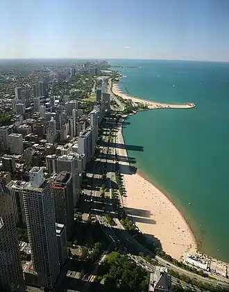 The nearby East Lake Shore Drive District and parts of northern Streeterville and the Magnificent Mile near the lake also may be considered part of the Gold Coast (such as the area around the 860-880 Lake Shore Drive Apartments), even if not technically in the historic designation.[4] The mayor's office map extends the Gold Coast south to the area of Northwestern University's Chicago campus.