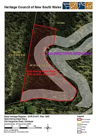 Gold Mining Water Race is a heritage-listed piece of mining infrastructure located on Old Hargraves Road at Windeyer, in the Central West region of New South Wales, Australia. It was built from 1855 to 1865 by Chinese miners, probably from Southern China. It was added to the New South Wales State Heritage Register on 22 December 2000.[1]