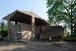 The Government Museum and Art Gallery were built for housing the artefacts received from the Lahore Museum during the partition of India.[3] The building was designed by the Swiss-born French architect, Le Corbusier along with his associate architects namely Manmohan Nath Sharma, Pierre Jeanneret and Shiv Dutt Sharma.[4] The design was completed during 1960-62 and construction took place between 1962 and 1967. It is one of the three museums designed by Le Corbusier, the other two being Sanskar Kendra, in Ahmedabad, and National Museum of Western Art, in Tokyo.