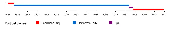 Below is a chart of party control in the South Carolina General Assembly since 1868.