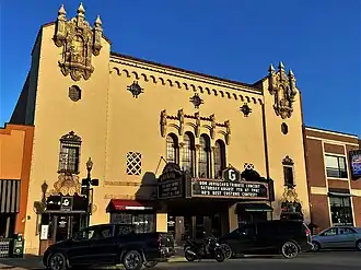 The Granada Theatre was constructed in 1929 at a cost of $350,000 ($6.41 million in 2024 dollars[2]). The theatre was dedicated on October 3, 1929, in a speech by “The Sage of Emporia,” William Allen White. During its early years, the theatre attracted many famous performers. In addition to screening movies, it was used for everything from beauty contests to traveling vaudeville acts. It was leased for many years to the Fox Corporation and became known as the Fox Theatre.[3]
