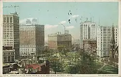The Grand Circus Park Historic District contains the 5-acre (2.0 ha) Grand Circus Park in Downtown Detroit, Michigan that connects the theatre district with its financial district. It is bisected by Woodward Avenue, four blocks north of Campus Martius Park, and is roughly bounded by Clifford, John R. and Adams Streets. The district was listed on the National Register of Historic Places in 1983.[1] The building at 25 West Elizabeth Street was added to the district in 2000, and additional structures located within the district, but built between 1932 and 1960, were approved for inclusion in 2012.[3]