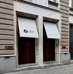 The Grand Hotel was not destroyed by the retreating German army and quickly restored its pre-war operations after 1945; as Poland's capital Warsaw lay in ruins, many of the administrative offices were temporarily transferred to Łódź and the hotel became a political venue of the Polish People's Republic.[21] Several ministers or politicians of socialist parties, including the later communist Polish United Workers' Party (PZPR), resided there.[21] The cinema hall was refurbished into a theatre stage that same year.[22] In 1950, the hotel began to be managed by the Polish travel agency Orbis, which decided to maximise the value of the premises by removing unnecessary fittings or decorations, and increasing the number of rooms available to guests.[10][23] Much of the external reliefs and ornaments were purposely dismantled.[23] In the 1970s, the hotel organised cabarets and dance performances, however, its 'ritzy' reputation began to decline and its halls were no stranger to shadow economy, thieves and prostitutes.[24] The hotel fell into disrepair and became characterised by its grey soot-covered façade for many decades.[25]