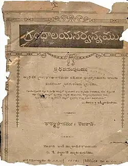 ![]() Cover page of Grandaalaya Sarvasvamu V.1 No.1 from 1916 | |
