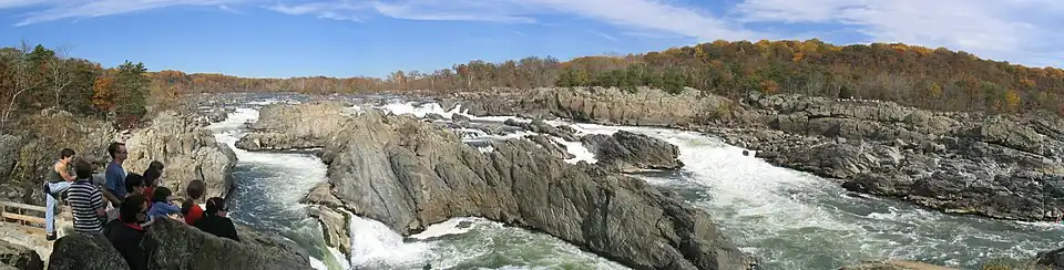 Great Falls Park is a small National Park Service (NPS) site in Virginia, United States. Situated on 800 acres (3.2 km2) along the banks of the Potomac River in northern Fairfax County, the park is a disconnected but integral part of the George Washington Memorial Parkway.[1] The Great Falls of the Potomac River are near the northern boundary of the park, as are the remains of the Patowmack Canal, the first canal in the United States that used locks to raise and lower boats.